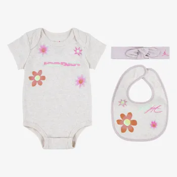 Michael Jordan édesanyjáról, Delorisról kapta a nevét. Ez a pamut szett olyan aranyos, mint a kisbabád. Tartalmaz egy rövid ujjú body-t, egy előkét és egy fejpántot. A body vállán lévő áthajtások és a lábak közötti patentok megkönnyítik az öltöztetést. A masnival díszített fejpánt gyorsan a baba kedvenc ruhadarabjává válik. Az előke kényelmes illeszkedést biztosít a patentnak köszönhetően. Hadd viseljék a babák már kicsi koruktól a kedvenc márkádat.